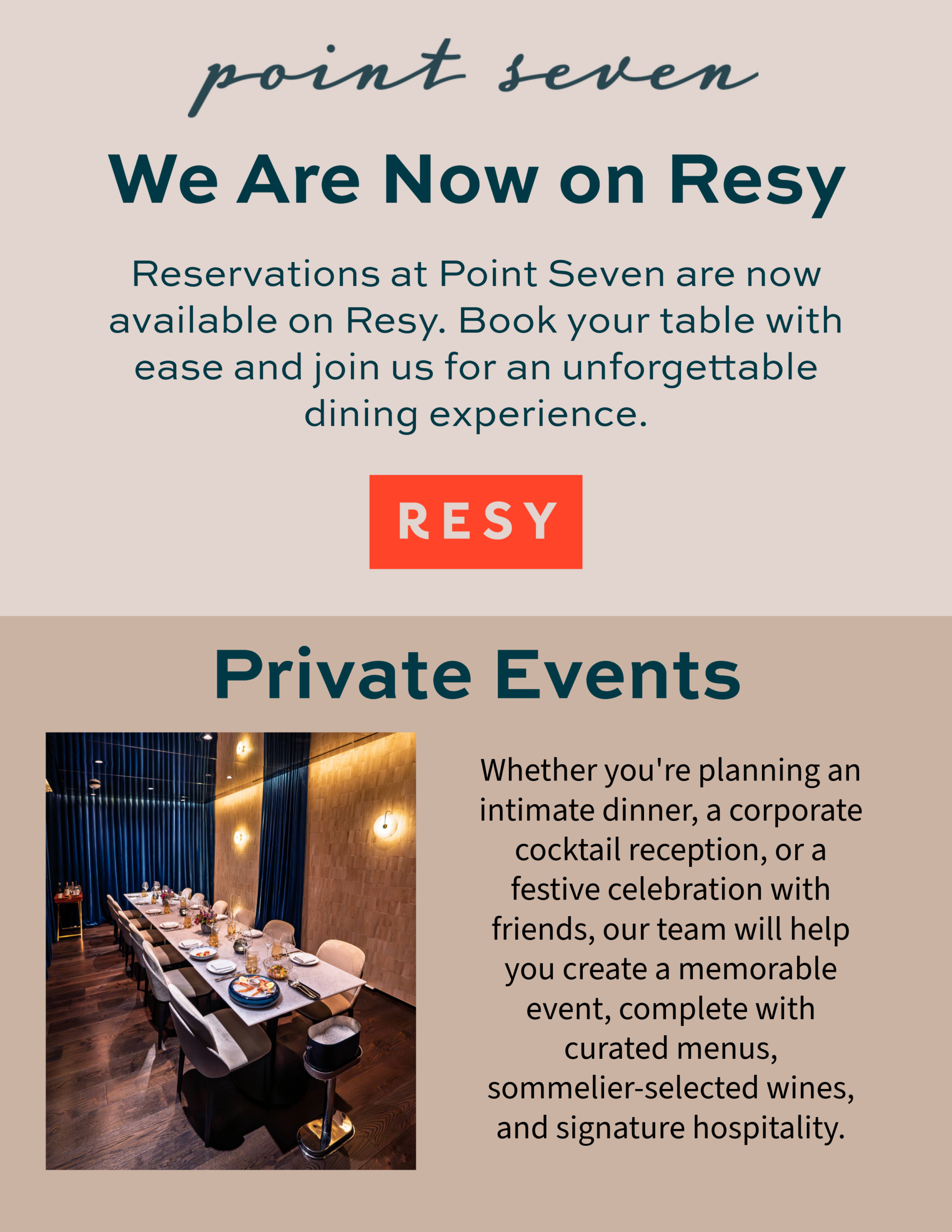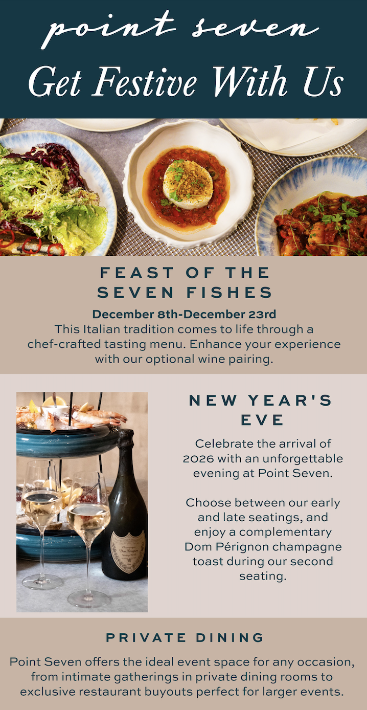 Point Seven has earned national acclaim via honors such as Forbes’ Best New Restaurants 2024, the Dirona Award of Excellence 2025, and Wine Spectator’s Best of Award of Excellence 2025.