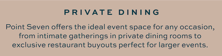Point Seven offers three creative and distinct dining experiences. Nestled within Point Seven is Coral Omakase, an intimate 12-seat dining experience that honors the art of Japanese omakase. Bento by .7 offers chef-curated sushi as an exclusive to-go Bento Box.